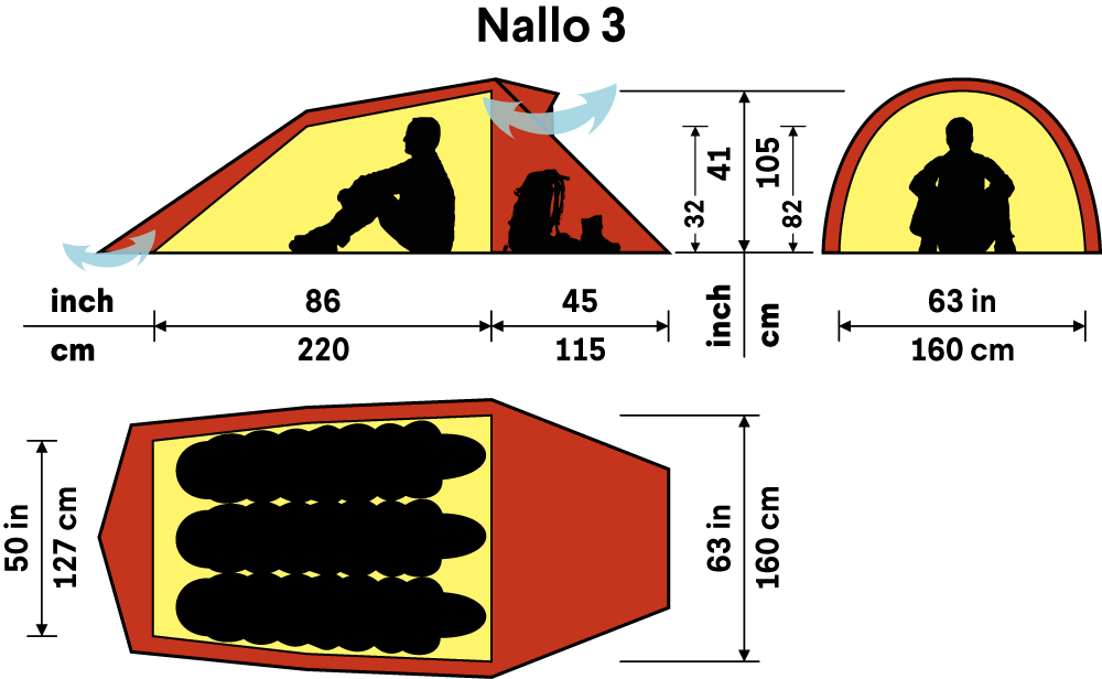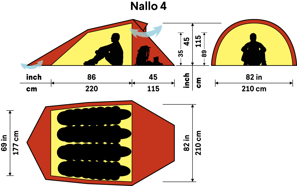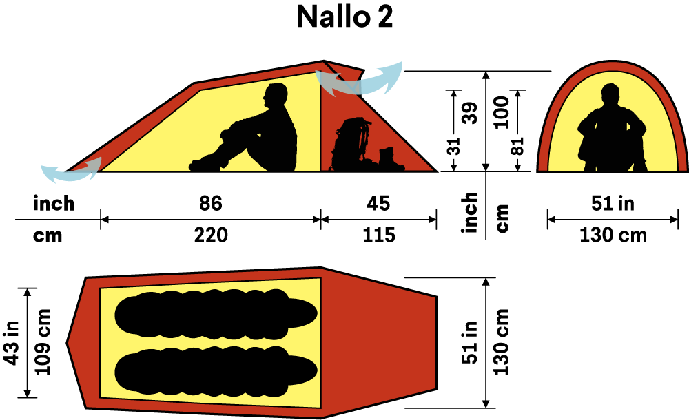 THE NALLO MODELS are known for their light weight. But it’s their remarkable strength that makes these tents the first choice for anyone needing the lightest weight tents that still offer all-season, all weather functionality. This includes hikers of all types, of course, but also wilderness photographers, climbers, hunters, and other adventurers who want to get more out of carrying less. Solo hikers can easily choose the near-palatial space of the Nallo 2 without any real weight penalty, just as two- and three-person parties can “size up” for the Nallo 3 and Nallo 4, respectively, without exceeding their weight “budget.” Families with younger children, those who hike with their dogs, and anyone else needing extra space find the Nallo GT models' extended vestibule indispensable. In addition, there is an entrance on either side of that extended vestibule, and the entire front section can be rolled back to create a full tent-width "covered patio" that's ideal for lounging out of the weather while still being outside.