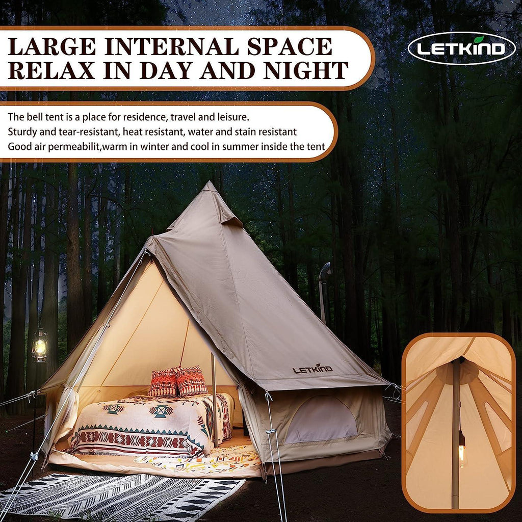 Immerse yourself in the beauty of the great outdoors while staying cozy and protected in this premium canvas bell tent.